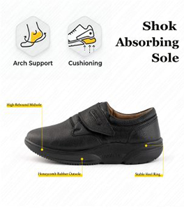 زیره کفش از نوع Shock Absorbing و Non-Slip بوده و ضربات ناشی از راه رفتن را جذب میکند. این طراحی باعث کاهش فشار وارده به پاشنه، زانو و ستون فقرات شده و همزمان با جلوگیری از لغزش، ایمنی بیمار را در محیطهای مختلف تضمین میکند.